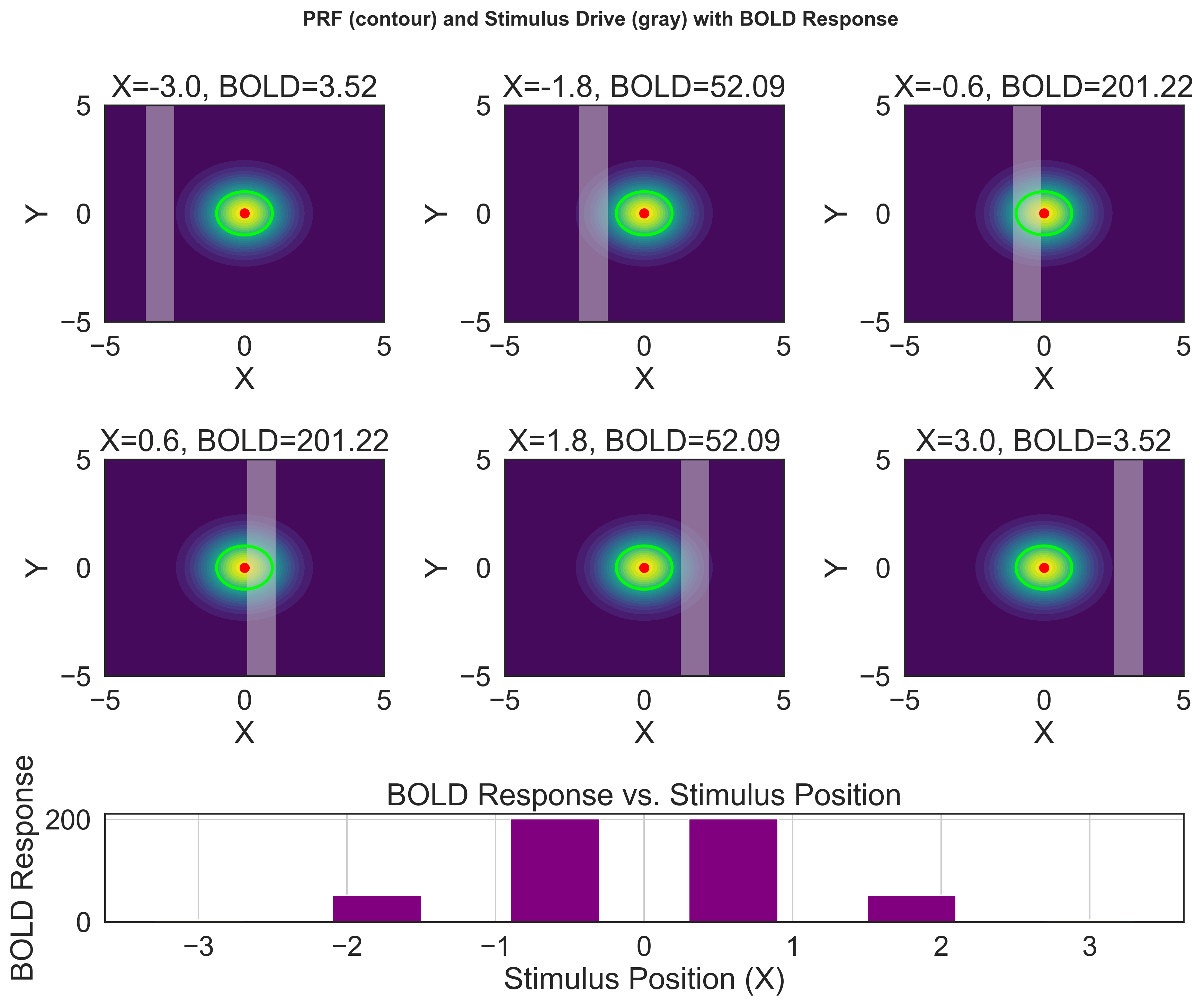 The encoding function predicts the BOLD response as the dot product of the PRF and stimulus drive